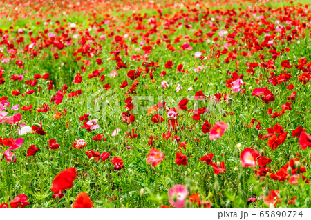 ポピーの花畑 国営みちのく杜の湖畔公園 宮城県川崎町の写真素材